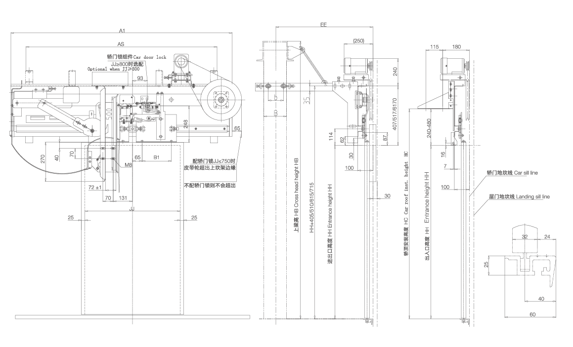 1、采用VVVF變頻控制技術(shù),06型門機配松下變頻器, A06型門機配NSFC01-01A變頻器 2、采用一級減速、同步帶傳動,運行平穩(wěn)可靠 3、采用異步門刀,轎架安裝方式和轎頂安裝方式,選配轎門鎖 4、門板重量≤200kg (轎門廳門總重量);電壓:200-250 V,50/60 Hz