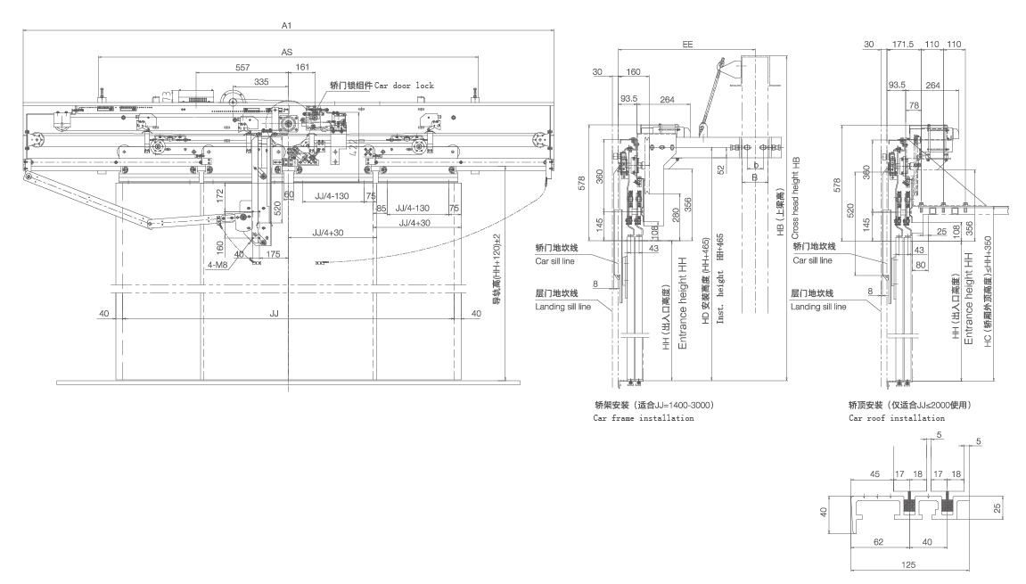 1、采用VVVF變頻控制技術 2、采用一級減速、同步帶傳動,運行平穩可靠 3、采用異步門刀,選配轎門鎖;轎架、轎頂安裝方式 4、門板重量≤320kg (轎門廳門總重量);電壓:200-250 V,50/60 Hz