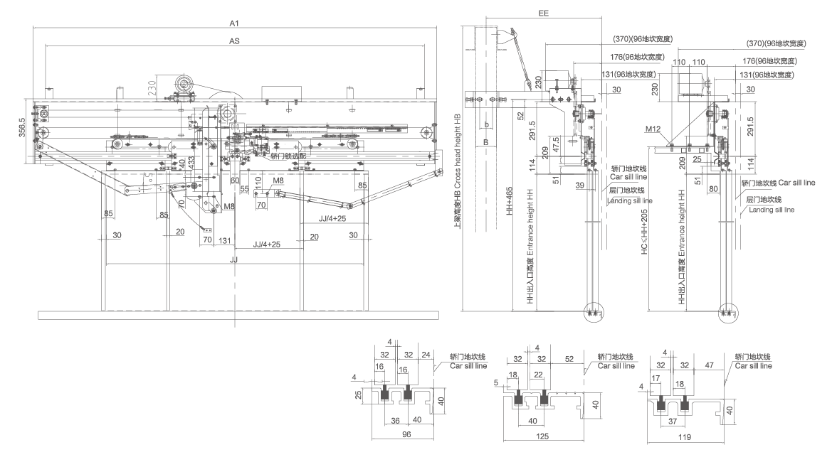 3、采用異步門刀,選配轎門鎖;轎架、轎頂安裝方式