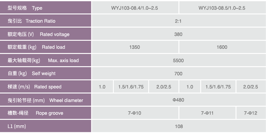4、承載大,適用于大載重的客梯、貨梯及醫梯